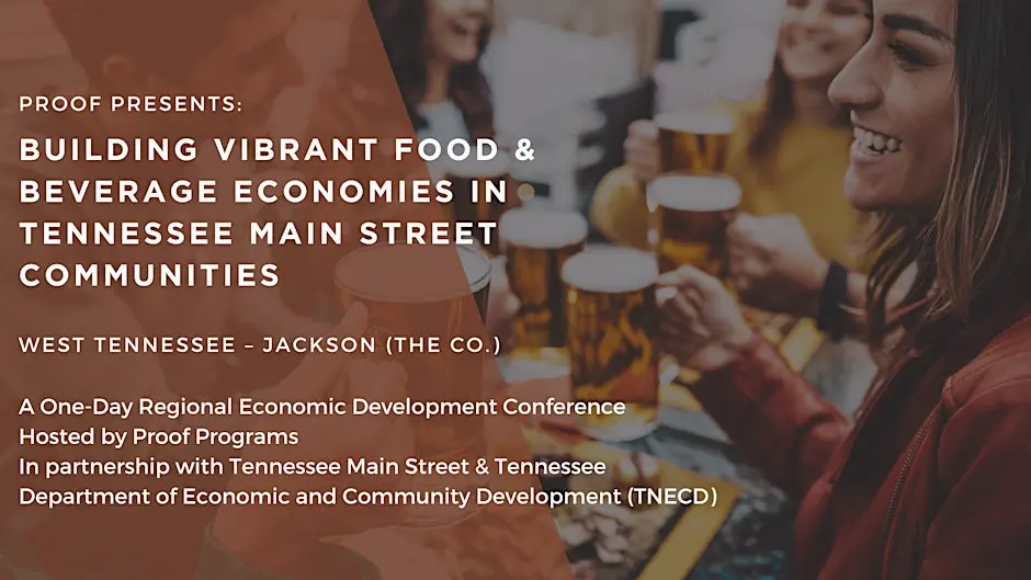 Proof Programs, in partnership with Tennessee Main Street and the Tennessee Department of Economic and Community Development (TNECD), is hosting a one-day regional conference to strengthen Main Street food and beverage ecosystems. This conference brings together community leaders, economic development professionals, and entrepreneurs to explore practical strategies for restaurant recruitment, downtown activation, and supporting food and beverage businesses.